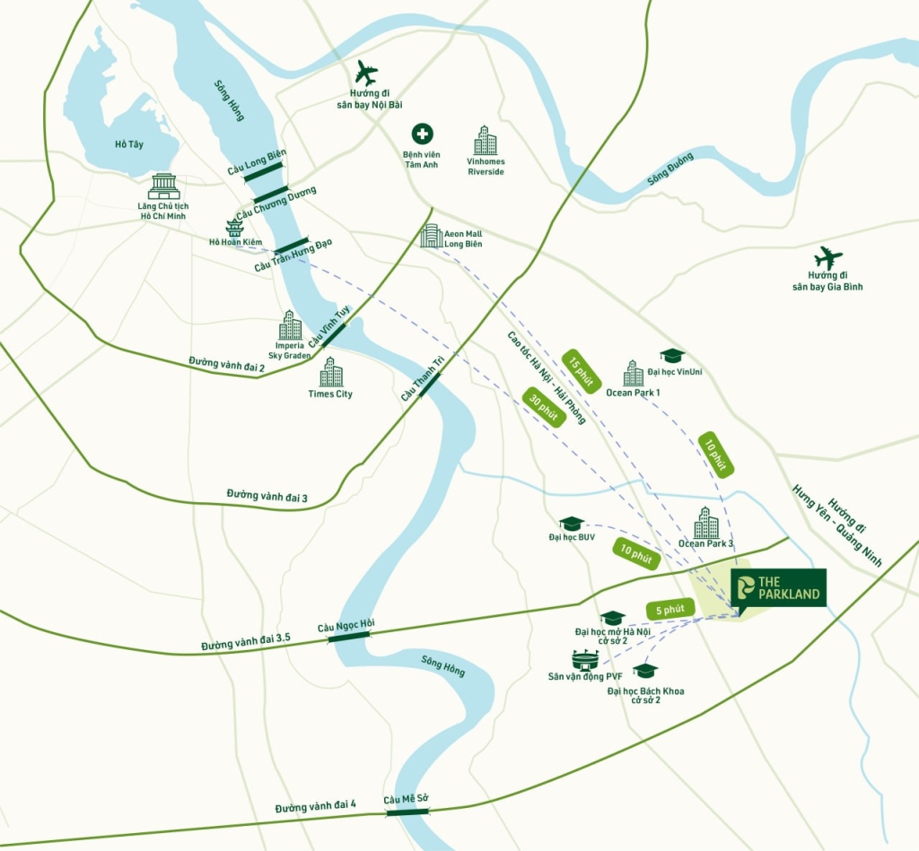 • Chỉ mất ít phút để di chuyển vào trung tâm Hà Nội qua cầu Vĩnh Tuy 2 và tương lai là Cầu Ngọc Hồi khởi công ngày 19/8/2025